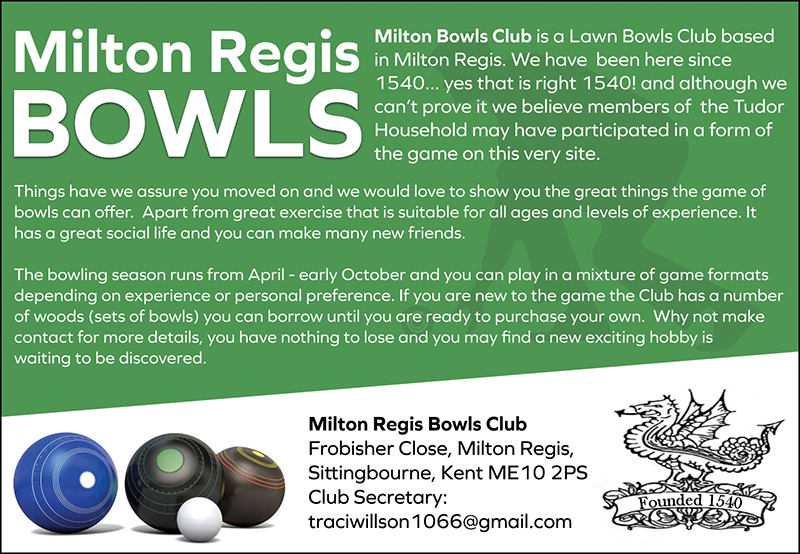 Milton Regis Bowling Club Frobisher Close, Milton Regis, Sittingbourne, Kent. ME10 2PS New members always welcome no matter what level of experience. Contact Club Secretary at Traci.Willson1066@gmail.com Contact Us Via Messenger Milton Regis Bowls Club