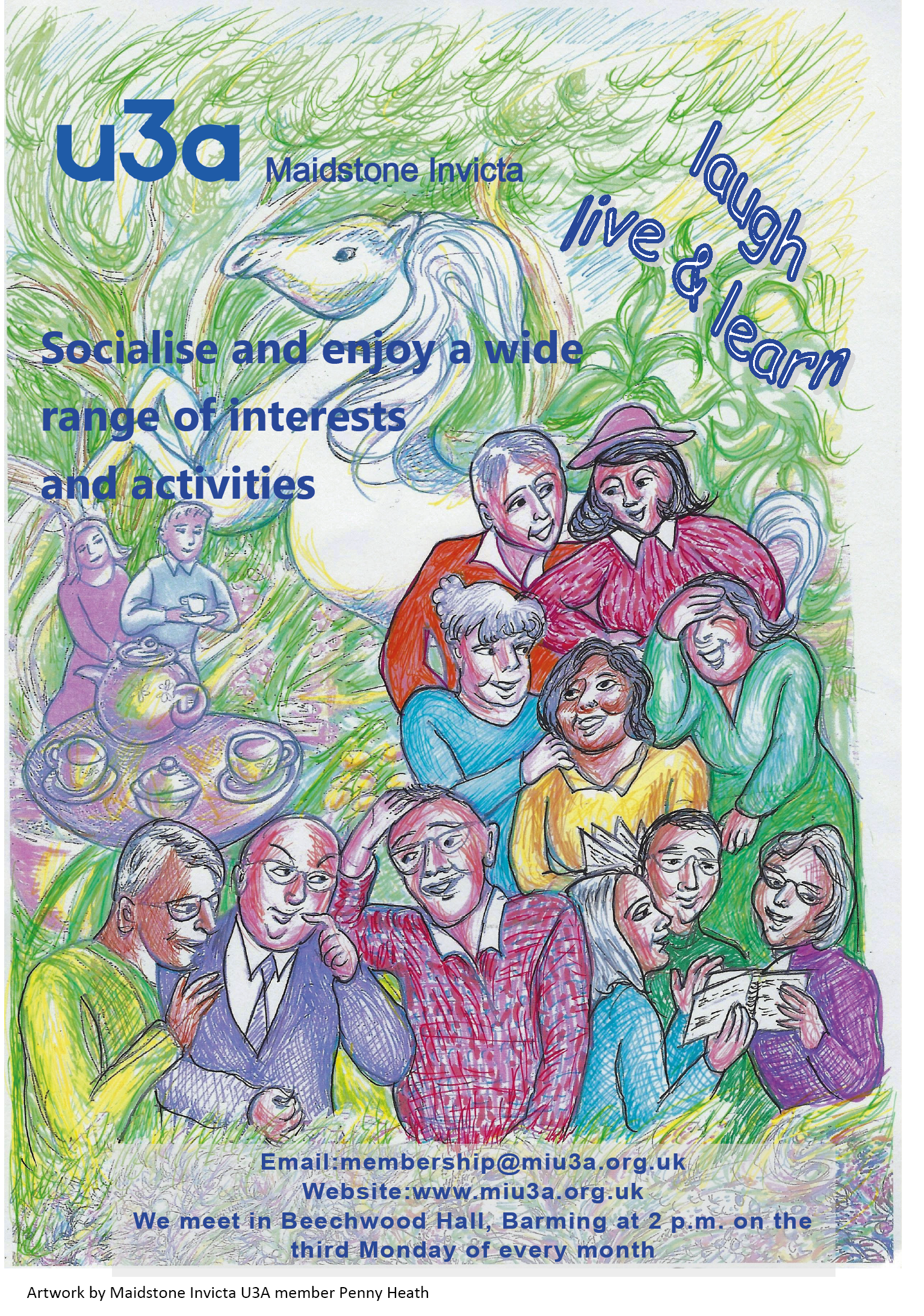 Maidstone Invicta U3A holds monthly meetings on the third Monday of each month (excluding December) at Beechwood Community Hall, Marigold Way, Barming. Our meetings commence at 2pm and feature well known speakers covering a variety of interesting topics. Visitors are always welcome. Beyond our monthly speaker meetings Maidstone Invicta u3a hosts over 30 special interest groups covering a wide range of subjects, including music, crafts, culture, and social activities alongside visits to local places of interest. A list of these activities, together with our speaker programme, are available on our website: miu3a.org.uk. The website also includes email contacts for further information.